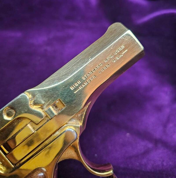 Découvrez une pièce d’exception destinée aux collectionneurs : le High Standard Derringer modèle D101 “Presidential”, édition limitée produite entre 1968 et 1972, dans sa version plaquée or 24 carats. Un modèle rare, élégant et emblématique du savoir-faire américain.