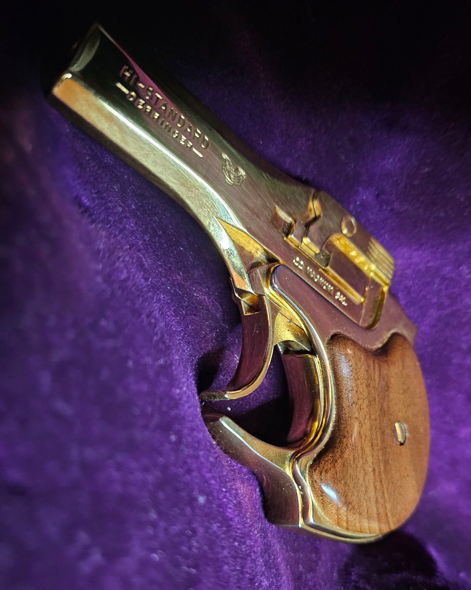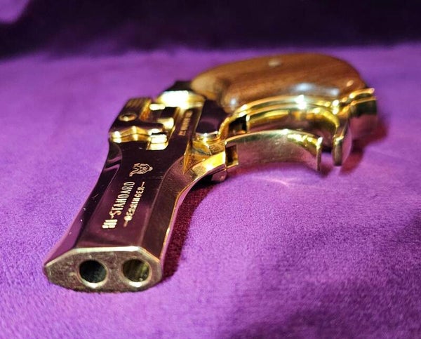 Un derringer d'exception✨️ : High Standard D101 'Presidential". édition limitée 🇺🇸, plaqué or 24K calibre .22 Magnum. Livré dans sa luxueuse boîte er bois & velours rouge 🎁 . État superbe, collection prestigieuse.🔥